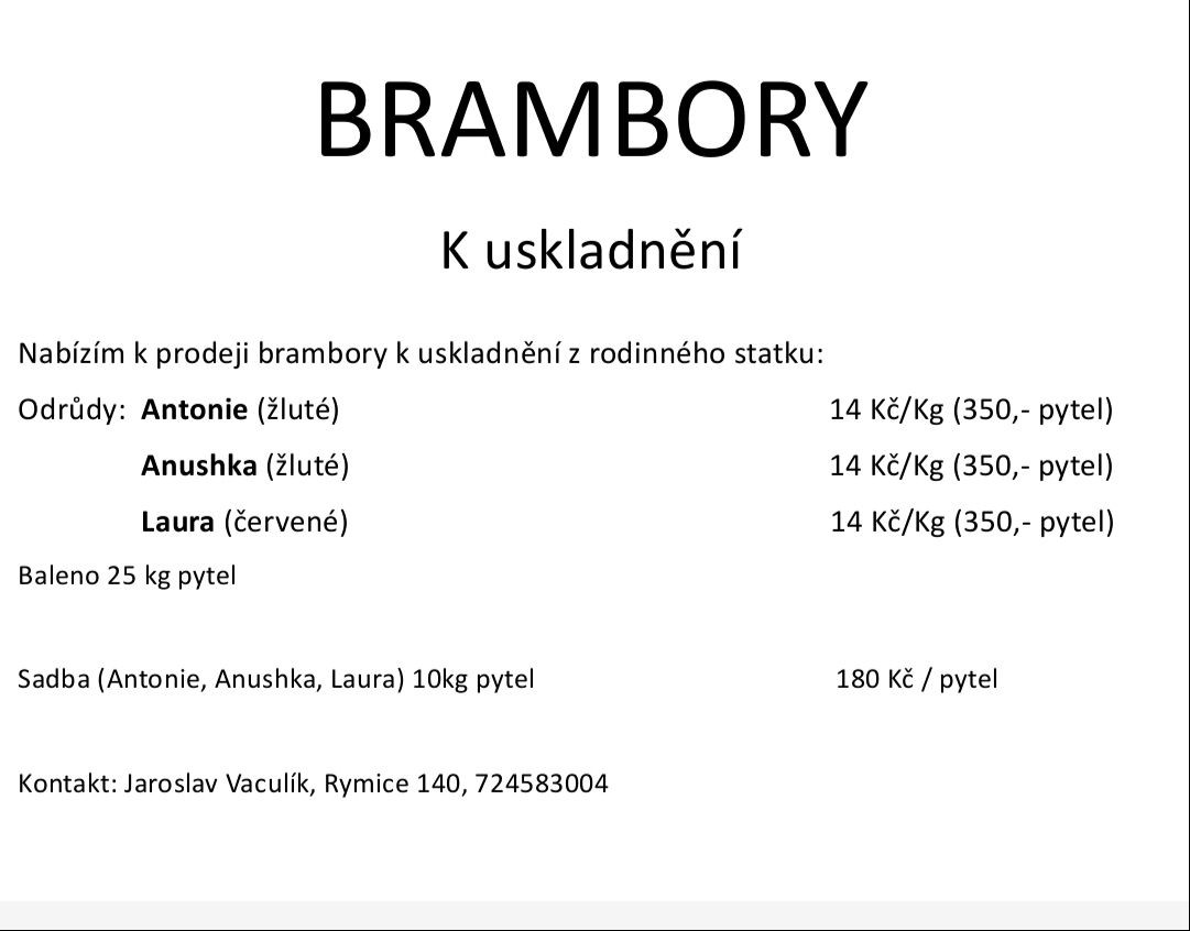 Brambory k uskladnění